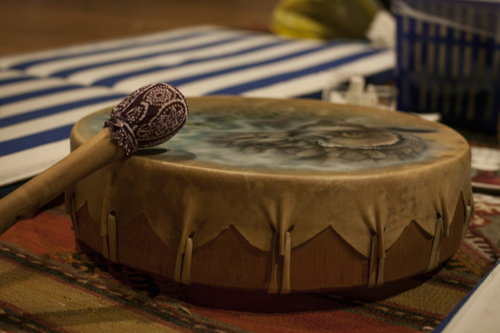 Made out of reindeer skin and decorated with images, the drum allows the noaidi to enter a trance state in which he can take animal form to further help the community.