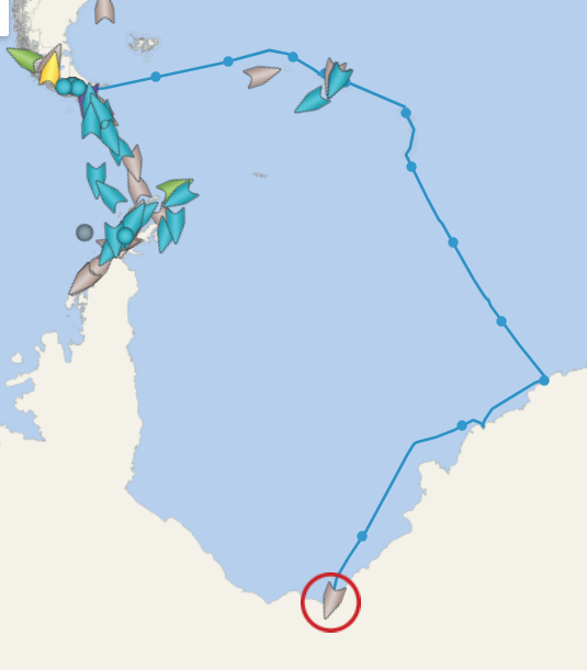 Photo: position of Ortelius vs other polar cruise vessels as captured by the CruiseMapper