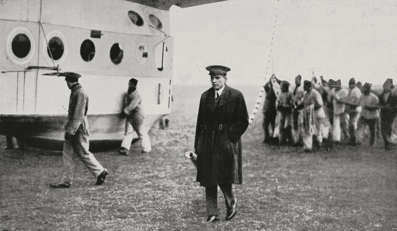 Umberto Nobile overseeing the moving of the Airship Italia. Photo by L'Illustrazione Italiana, Year LV, No 13, March 25, 1928.