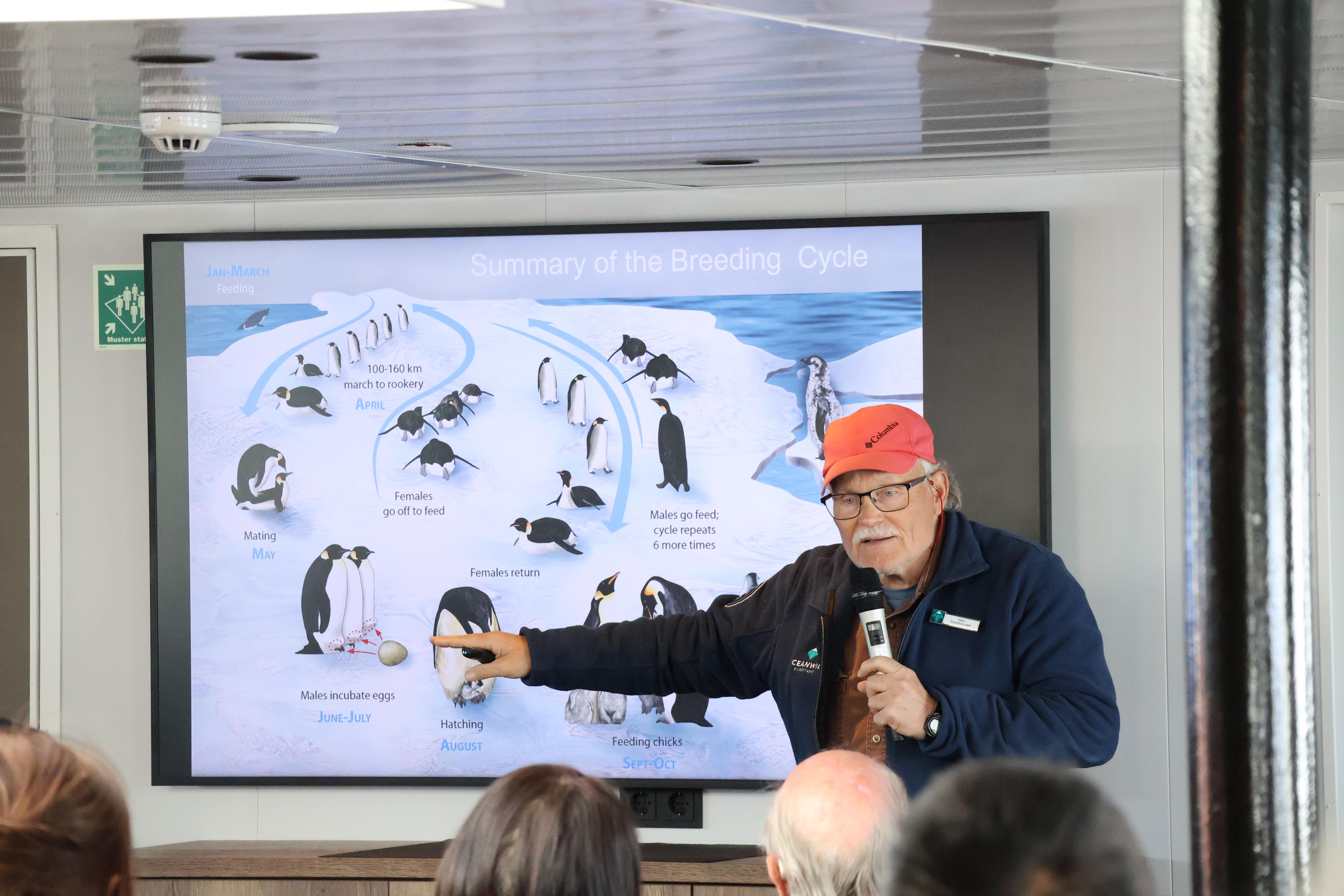 Many of these lectures will be specific to the locations and wildlife encounters you may have had that day or during previous excursions, while others will focus on specific topics of particular interest on different itineraries. You might be able to learn from glaciologists or geologists as they describe the forces that have sculpted polar landscapes over millennia, or hear polar historians recounting dramatic tales of human endurance while you stay warm with a cup of cocoa.