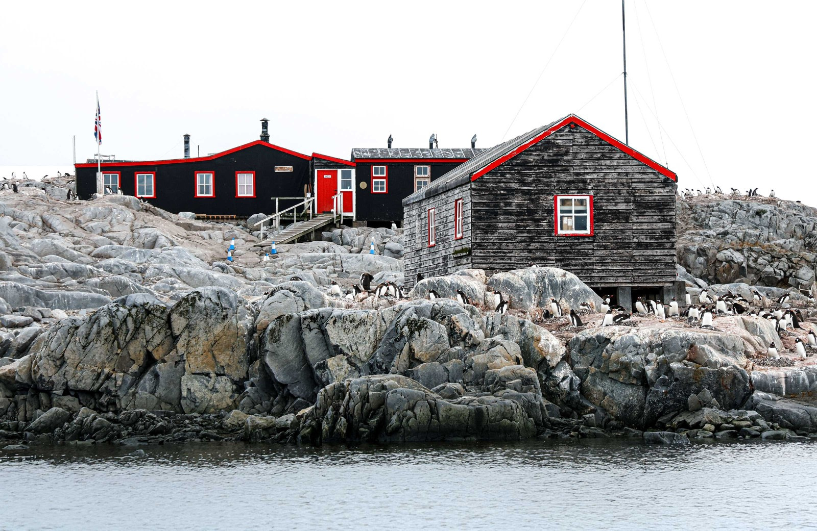Port Lockroy, ein ehemaliger britischer Stützpunkt aus dem Jahr 1944, liegt auf der Insel Goudier in der Nähe der antarktischen Halbinsel