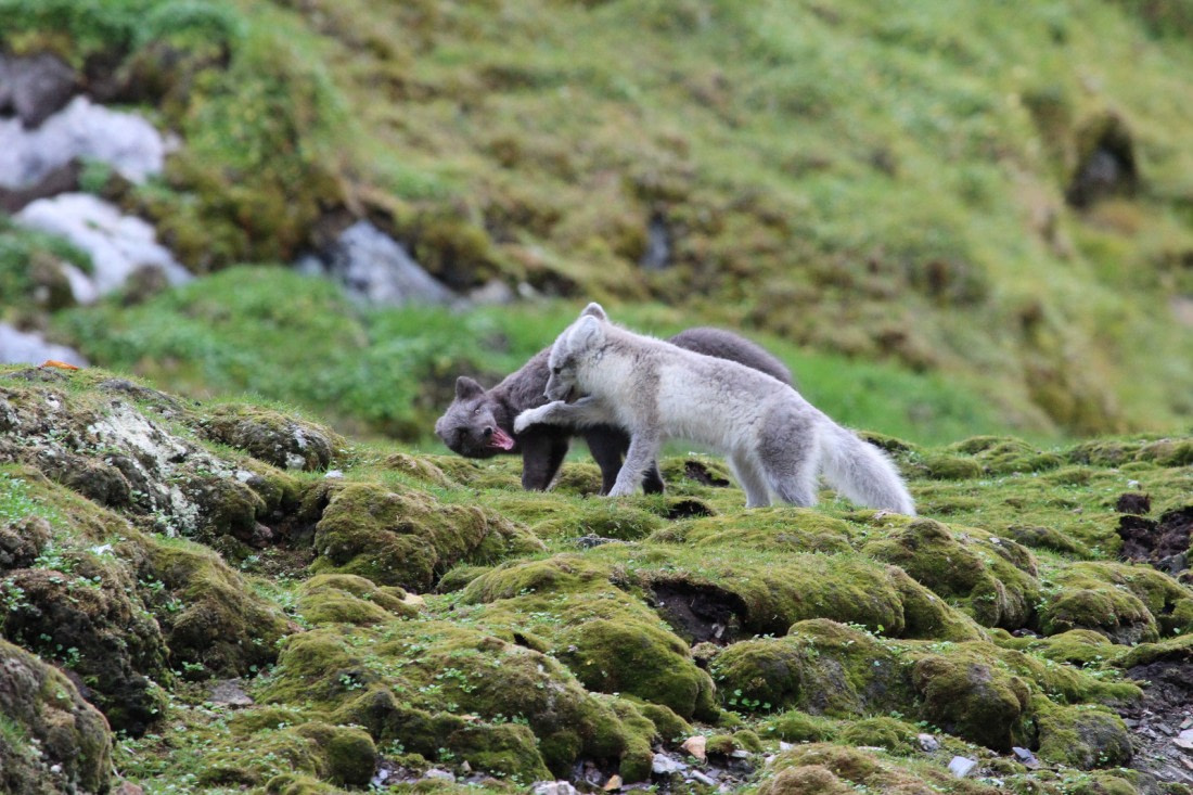 Graue Wölfe waren traditionell das größte Raubtier der Polarfüchse, aber aufgrund der globalen Erwärmung überschneiden sich die Reviere von Polarfüchsen und Rotfüchsen, was eine neue und zunehmende Bedrohung für die Polarfüchse darstellt.