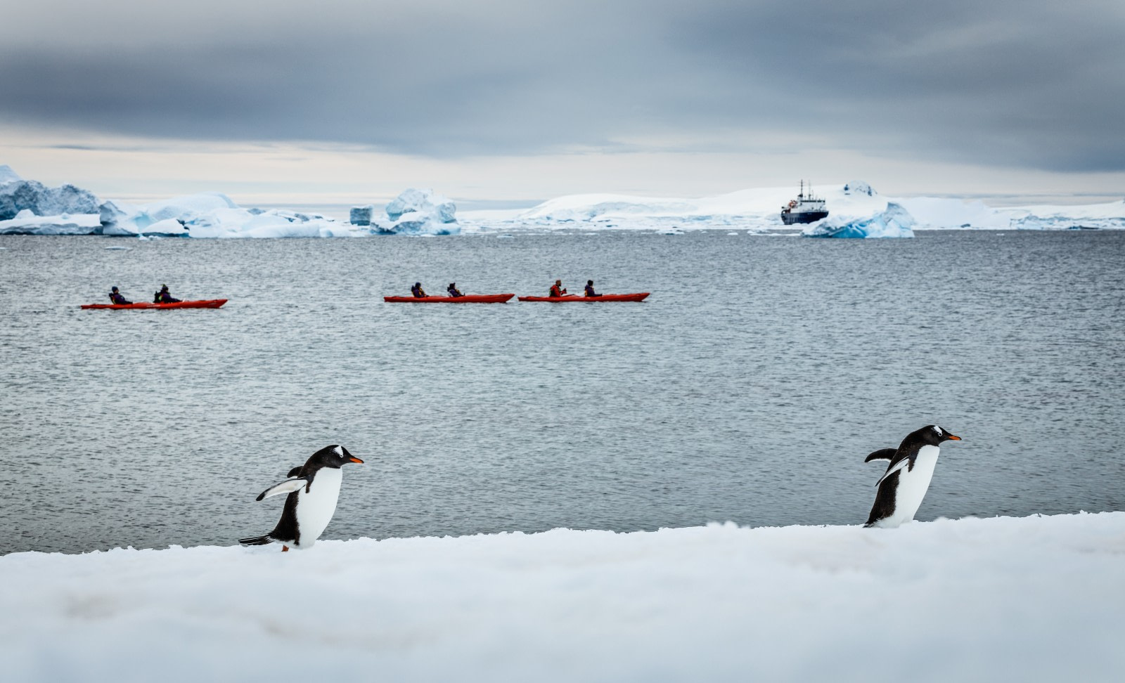 El kayak es una de las mejores maneras de sumergirse en el hermoso mundo azul y blanco de los pacíficos mares polares
