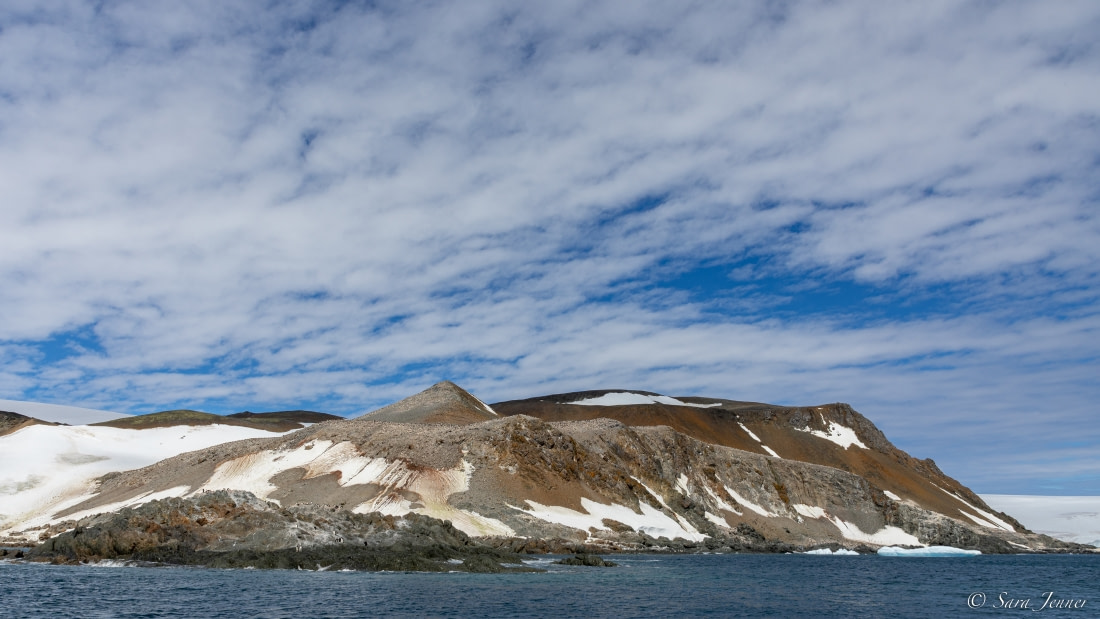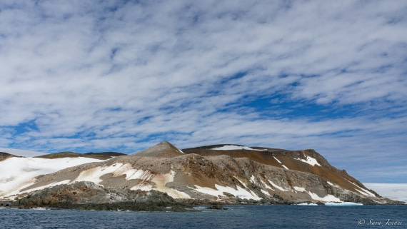 Estos acantilados de la isla Joinville, llamados así por su color rojo, albergan una gran colonia de pingüinos Adelia y otras aves