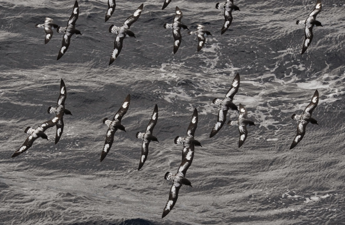 2) Daption capense capense - îles subantarctiques du monde entier, à l'exception de celles situées près de la Nouvelle-Zélande - "Daption" vient d'un mot grec ancien qui signifie "petit dévoreur" et "Pintado" est un mot espagnol qui signifie "peint".