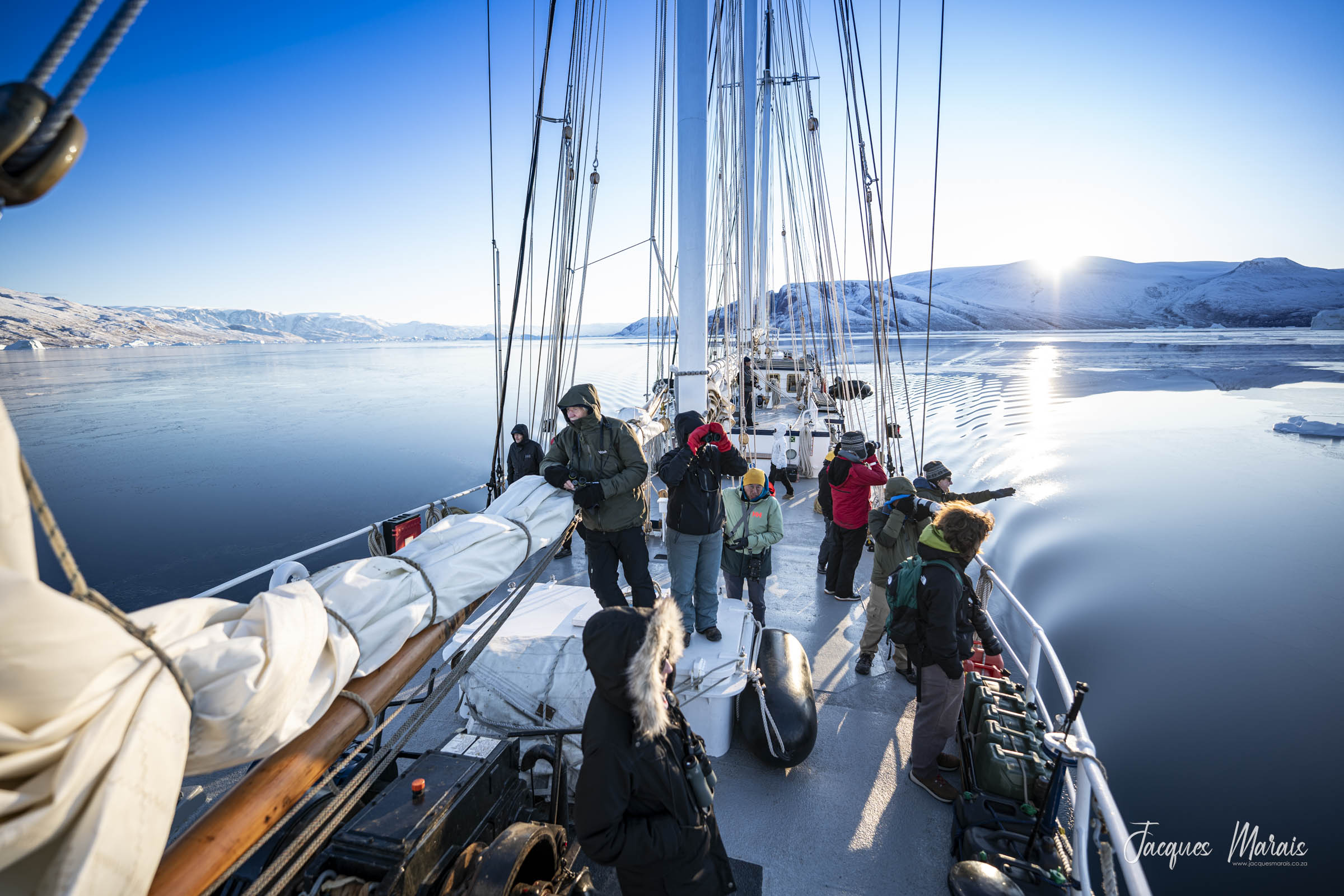 La glace de mer commence à se reformer, rendant certaines routes moins accessibles tandis que d'autres restent ouvertes en raison des changements de vent et de courant. Cela rend chaque voyage unique et fortement dépendant des cartes des glaces et des conditions locales.