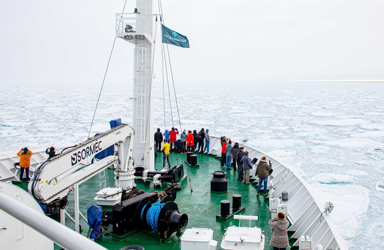 Vandaag varen we Hinlopen Strait in, waar baardrobben, ringelrobben en ijsberen leven. Bij de ingang is het zelfs mogelijk om blauwe vinvissen te zien. Net als bij Liefdefjorden kunnen we een alternatieve route naar West-Spitsbergen nemen als we door het ijs Hinlopen niet in kunnen. Nadat u in de Zodiacs tussen de ijsschotsen van Lomfjord hebt gevaren, bekijkt u de vogelkliffen van Alkefjellet met hun duizenden Brünnich's zeekoeten. Aan de oostkant van Straat Hinlopen kunnen we proberen aan land te gaan in Palanderbukta, waar rendieren, kleine rietganzen en walrussen een waarschijnlijke bezienswaardigheid zijn. Als alternatief kunnen we in Torrelneset ook de poolwoestijn Nordaustlandet bezoeken, naast de op twee na grootste ijskap ter wereld. Hier kunnen we walrussen tegenkomen tijdens een kustwandeling over de verhoogde stranden van het gebied.