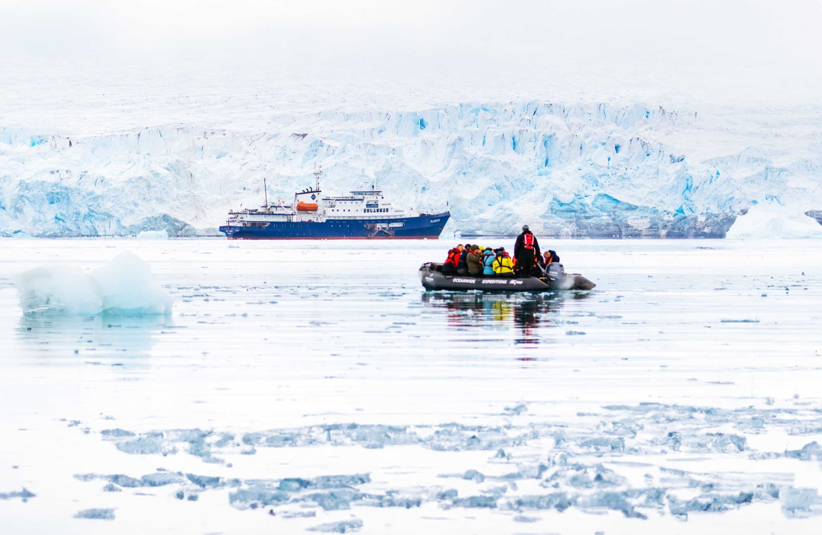 Per Zodiac verkent u de poolwereld en komt u dicht bij ijsbergen, gletsjers en iconische wilde dieren