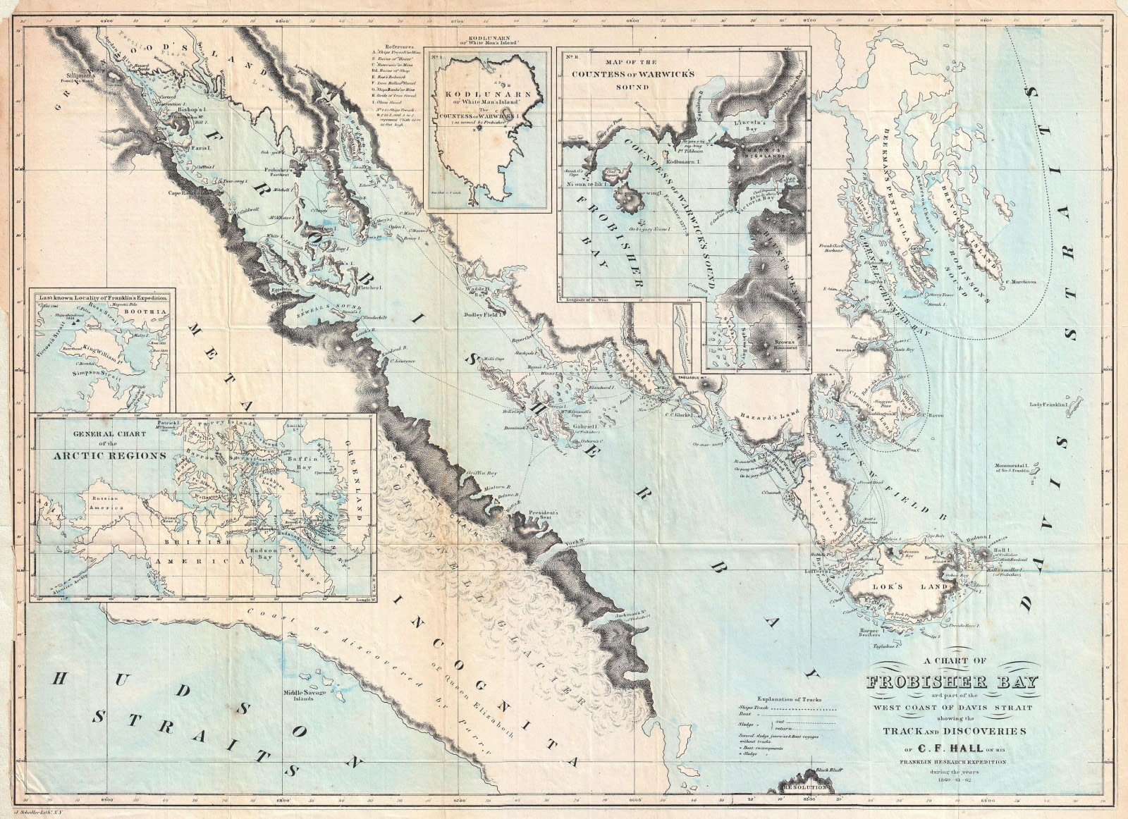 De eerste expeditie van Frobisher bereikte de kust van Baffin Island in juli 1576 en zeilde westwaarts naar wat nu Frobisher Bay is. De bemanning geloofde dat dit de ingang van de Noordwestelijke Doorvaart was en waagde zich verder tot ze in augustus een groep Inuit tegenkwamen. Na aanvankelijk met de inheemse groep te hebben afgesproken om zijn mannen door het gebied te leiden, leidde een misverstand ertoe dat een aantal van zijn bemanningsleden gevangen werden genomen. Ondanks Frobishers poging om hen vrij te laten, werd er nooit meer iets van zijn mannen vernomen. Volgens de legende van de Inuit zouden de mannen echter vele jaren onder de inheemse bevolking hebben geleefd.
