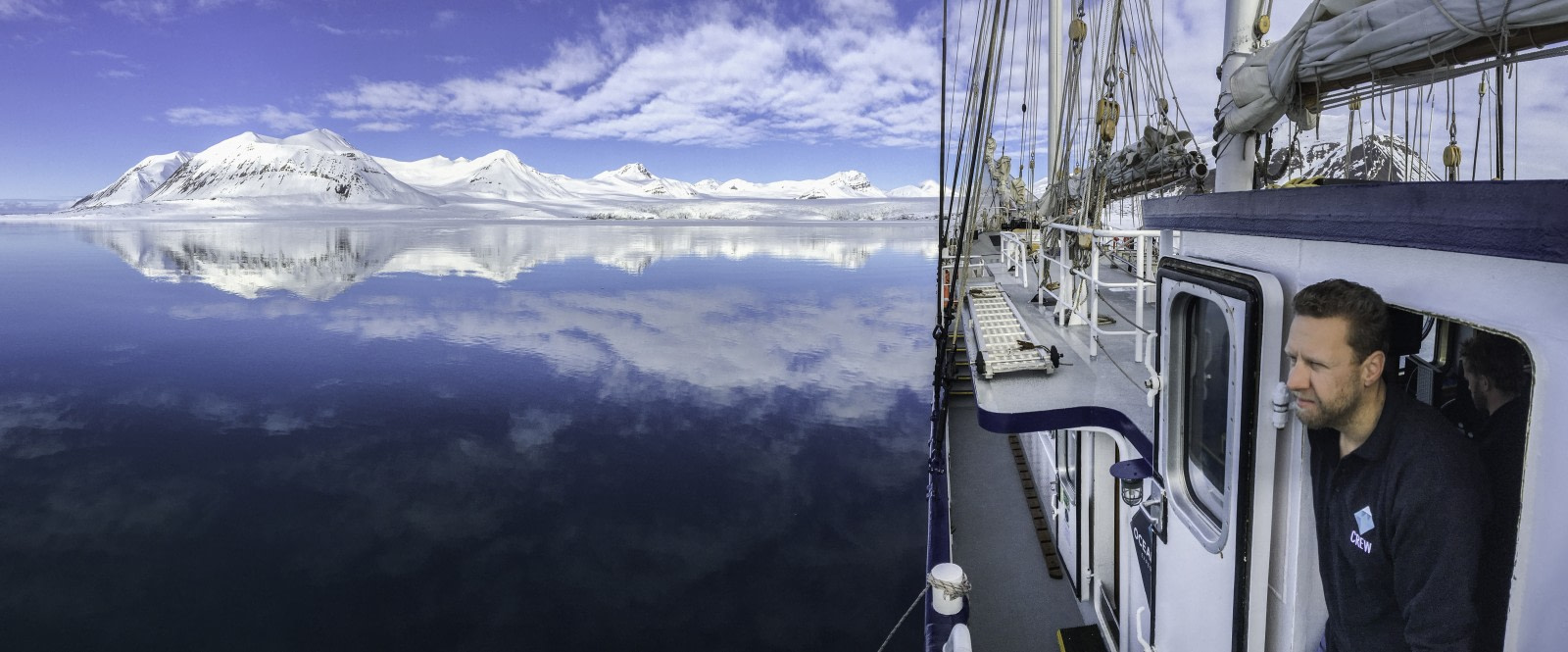 Zo iemand is Sven Holzhausen, kapitein van ons historische schip, de Rembrandt van Rijn, die reizen maakt langs de besneeuwde, met noorderlicht verlichte kustlijnen van Spitsbergen en Noord-Noorwegen.