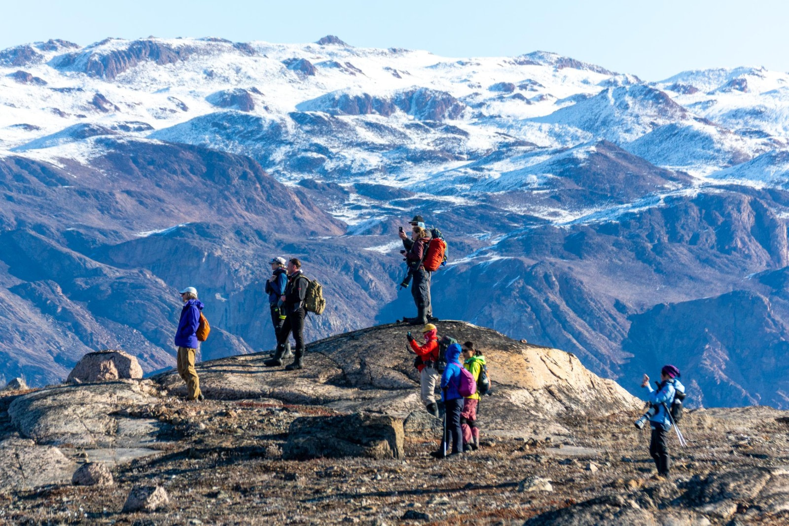 Wandelaars van Oceanwide Expeditions brachten hele dagen door, weg van het schip, en waagden zich in glooiende toendra's en naar de top van rotsachtige, met sneeuw bedekte uitlopers, onder prachtige blauwe luchten en in de schaduw van besneeuwde toppen en immense gletsjers. In drie dagen verkenden de wandelaars de hellingen van Milne Land bij Ikasakajip Nua, waagden ze zich diep in de herfsttooi tussen Harefjord en Rypefjord en doorkruisten ze de golvende verlaten vlakten van Jameson Land.
