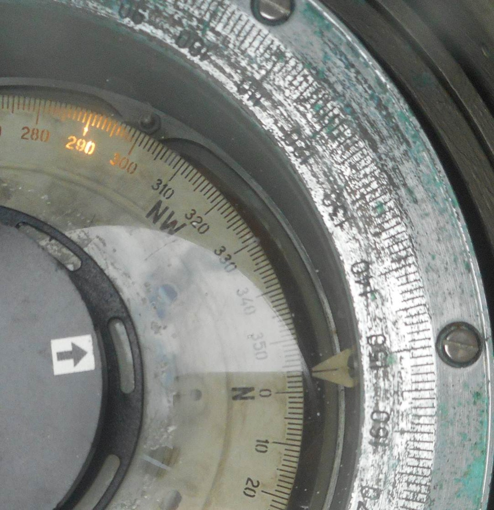 Steering by the compass might sound old school in these days of GPS and satellite, but every ship is required to have one, as you never know when you might need to use it. The compass points to the magnetic north pole, but can be rendered inaccurate when surrounded by magnetic material, such as our steel ship and all her contents.