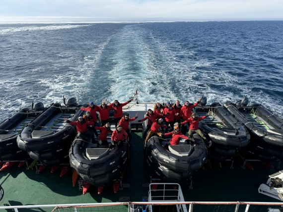 De avond begon met onze dagelijkse samenvatting, waarbij expeditieleider Jerry de plannen voor de volgende dag schetste. Kaitlyn gaf fascinerende inzichten in het leven van beluga's en Meike deelde een spannend verhaal over de levenscyclus van de drieteenmeeuwen die we in overvloed hadden gezien.