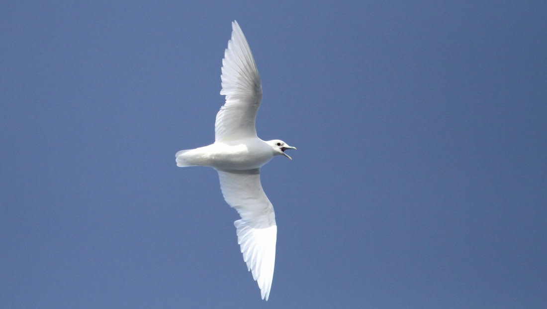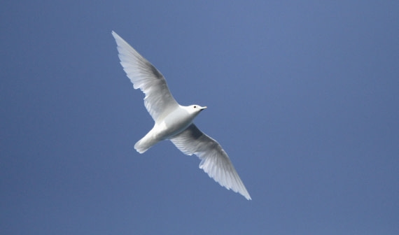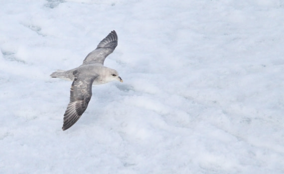 After lunch we all loaded into our zodiacs once more to enjoy the wonders of the Brunnich’s guillemot colony living upon the dolomite cliff. The weather had cooled off a little since this morning and there was more wind with a flutter of snow. No matter we made our way to the cliff to enjoy the birds. Over 60,000 breeding pairs come to breed on all the nooks and crannies of the cliff during the short Svalbard summer. The air appeared to be buzzing like a beehive with birds in the air and the ones residing on the cliff were just as impressive sharing tiny ledges with 10s of other birds. The noise was incredible, it sounded like they were laughing at us looking down from their high point.