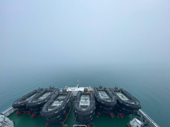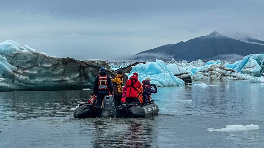 Na de oefening gingen we naar de bar waar Hotel Manager Will en Expeditieleider Marcel ons welkom heetten. Na de briefingformaliteiten was het tijd om samen met kapitein Artur in de bar het glas te heffen om de reis te vieren. Toen was het tijd voor onze eerste avondmaaltijd, met een heerlijk buffet verzorgd door Chef Gaurav en zijn kombuis team geserveerd door ons vriendelijke eetzaal personeel. Na het eten kregen we onze muck boots die we zouden gebruiken om aan land te gaan; comfortabel maar ook, heel belangrijk, waterdicht voor onze natte zodiac landingen! Na een lange reisdag was het voor de meesten van ons tijd om naar bed te gaan en wat uit te rusten voor de eerste volle dag van onze reis morgen.