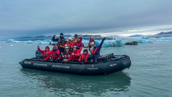 Eindelijk! De dag was aangebroken, het was tijd om aan boord te gaan van ons nieuwe thuis voor onze pas begonnen expeditie, de Hondius! We kwamen aan in de haven van Longyearbyen met kalm, glashelder water. Sommigen van ons waren pas een paar uur eerder geland en nu stonden we op het punt om ons avontuur aan boord van M/V Hondius te beginnen. Het Expeditieteam en het hotelpersoneel hadden eerder op de dag onze bagage aan boord gebracht en naar onze hutten gebracht. We hoefden alleen nog maar een paar foto's van het schip te nemen terwijl we de loopplank opgingen. We werden hartelijk verwelkomd door de bemanning en het personeel die ons hielpen bij het vinden van onze hutten. Met nog wat tijd over verkenden we het schip en genoten we van een kopje thee of koffie in de bar.
