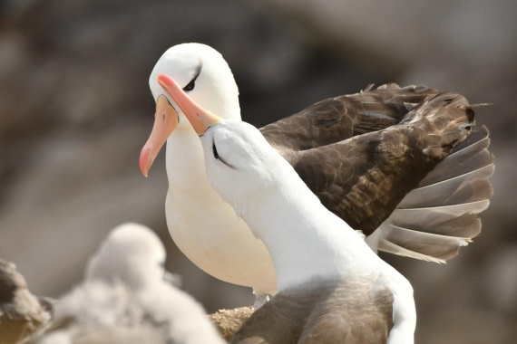 The shore itself was a pebbly beach, overlooked by a massive cliff made of volcanic ash. A multitude of penguins, both Gentoo and Adelie, had occupied the entire area. There were young penguins as well as their tired parents. Some penguins stood motionless, molting. Not the most pleasant time in a penguin's life, but what can you do? The old feathers stuck out in all directions, and in their place, fresh, smooth, black feathers were growing.