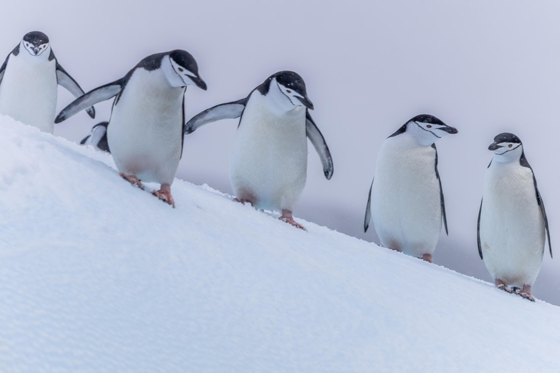 In the afternoon, we split into groups. Some of us went ashore at Peterman Island, stepping carefully onto land dotted with gentoo and Adelie penguins. They bustled around us, completely unconcerned, going about their lives in a chorus of soft calls and flapping wings. It had been grounding in a different way—earthy, alive, full of small, persistent energy.