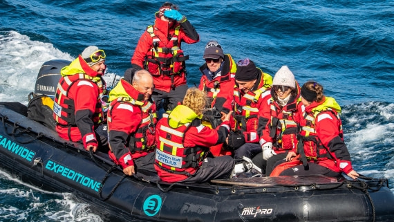 We underwent the abandon ship drill, putting-on our lifejackets and heading outside to be shown to the lifeboats, where we realised that we had already cast-off from the pier and our journey was underway! Following the drill, we assembled in the bar where Captain Per welcomed us with champagne and canapés, Hotel Manager Volodymyr talked about the shipboard services, and Sara gave an overview of the voyage and introduced the expedition team.