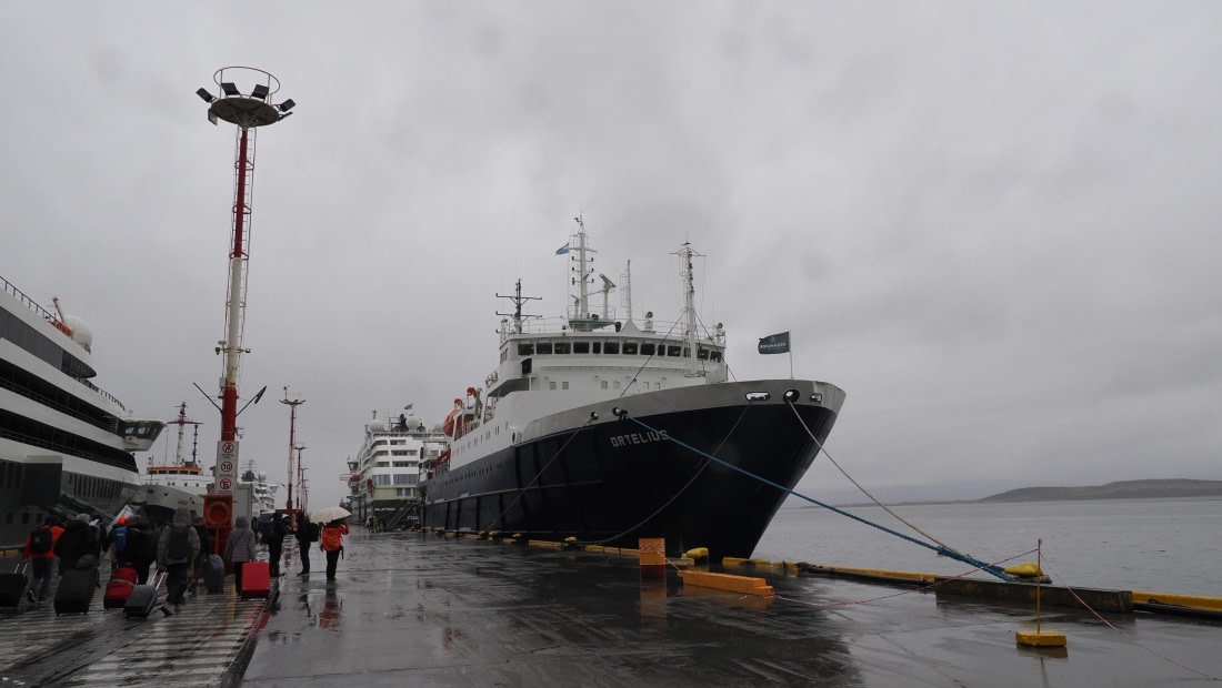 The day of embarkation began under wet conditions in Ushuaia, as the overcast sky showered us with a drizzle of rain, but it didn’t dampen our spirits! We couldn’t be happier to walk on board the cosy dry ship of Ortelius, our new home for the next 14 days where adventure awaited us.