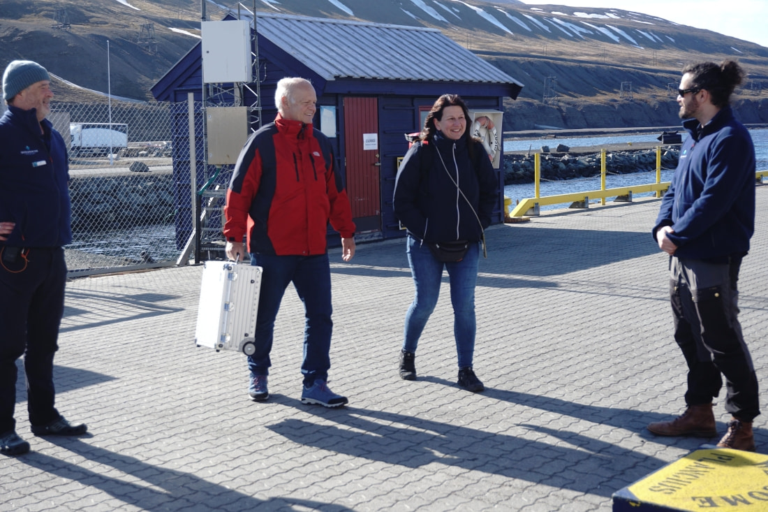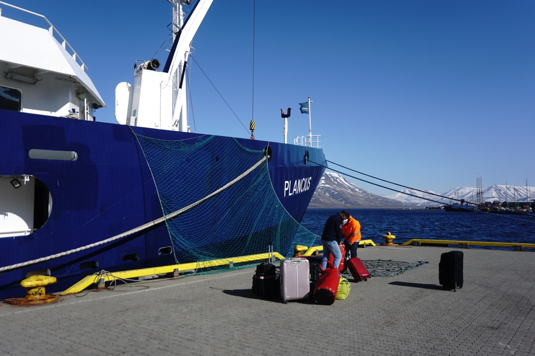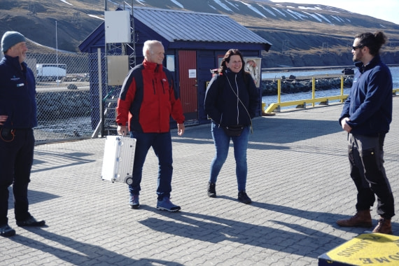 Onze gidsen landden veel eerder op de kust dan wij. Omdat de dreiging van een ontmoeting met een ijsbeer altijd aanwezig is, is een grondige verkenning vereist om er zeker van te zijn dat er geen harige roofdieren in de buurt zijn. Zodiacs voeren heen en weer langs de kust, de gidsen erin gewapend met verrekijkers, om de kustlijn en verschillende plooien in het terrein te bestuderen. Daarna verkenden ze, al op de kust, verschillende verdachte hoeken en nadat ze er zeker van waren dat alles rustig was, gaven ze het startsein voor ons om ons bij hen te voegen.