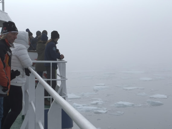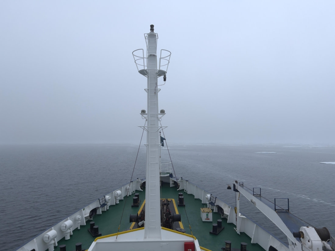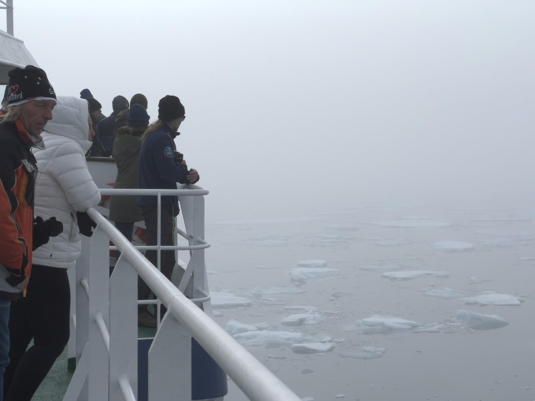 Later op de ochtend verzamelden we ons in de lounge voor onze laatste verplichte vergadering. We leerden over Zodiac operaties en hoe we ons moesten gedragen in ijsberenland. We zeilden de fjord uit en voeren tussen de vele eilanden van de noordwesthoek van Spitsbergen door naar de Raudfjord. Omdat de Plancius geen grote afstand hoefde af te leggen, lieten we kort na de lunch het anker vallen bij Hamiltonbukta.