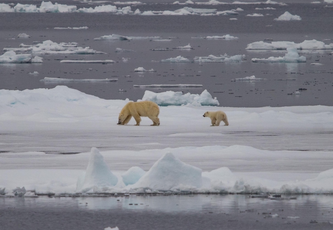We hadden allemaal graag willen blijven, maar ons expeditieteam had vandaag nog een activiteit gepland, namelijk een boottocht door het zuidelijke deel van de Raudfjord. Terwijl we voeren, klaarde de lucht op tot een stralende zon zonder wind. Plancius voer naar het zuiden terwijl een heleboel ervaren ogen in alle mogelijke richtingen bleven kijken. Ze vonden nog een ijsbeer, deze keer lopend langs de kustlijn. Met een beetje hulp lukte het ons allemaal om de juiste plek te vinden. Het licht was perfect en het schip stabiel en we keken allemaal toe hoe het een baai binnenvaarde en uit het zicht ontsnapte.
