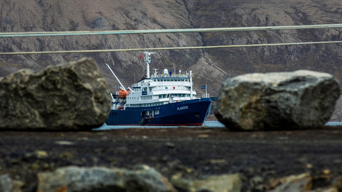 Vandaag is het zover! Het is eindelijk tijd om aan ons arctische avontuur te beginnen! De dag was passend arctisch met wolken en een stevige bries, maar de storm van de vroege ochtend was afgenomen. In de late namiddag kwamen we aan bij het dok waar we ons schip Plancius, ons nieuwe thuis voor de komende 8 dagen, voor anker zagen liggen in de haven. We hadden een bonus Zodiac shuttle om onze expeditie te beginnen. Aan boord checkten we allemaal in en werden we snel naar onze hutten gebracht. Opgewonden begonnen we het schip te verkennen en over de dekken te zwerven om van het uitzicht op Longyearbyen te genieten.