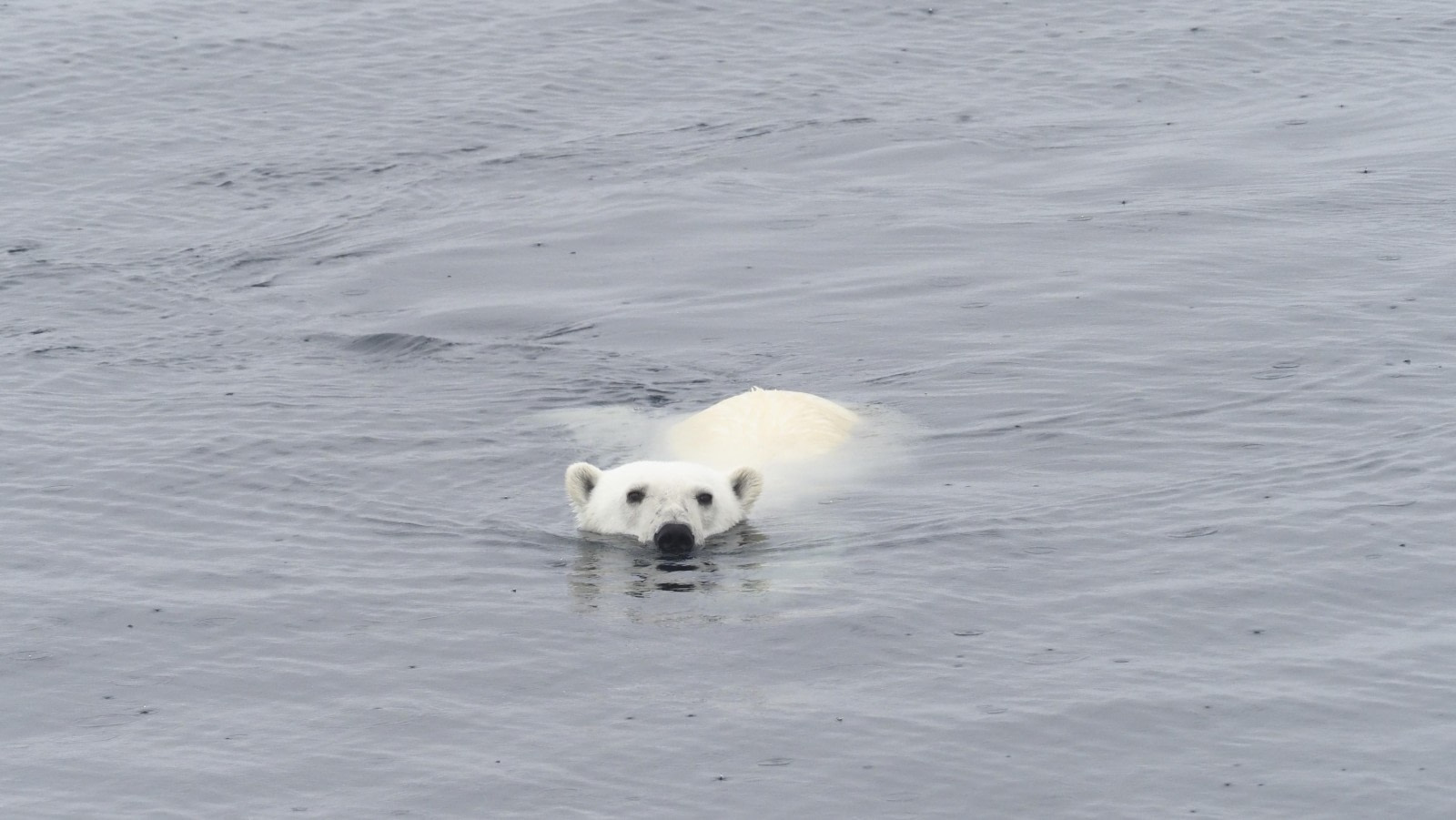 De locatie was moeilijk voor Zodiacs en chauffeurs; het gebied lag vol ondiepe rotsen en het gletsjerwater vol sedimenten maakte het onmogelijk om te zien wat er zich onder en dicht bij de kust bevond. Velen voelden uiteindelijk een duwtje van een rots onder de romp of raakten zelfs een propeller. Dit is echt een expeditie en we gaan naar plaatsen waar we niet zouden kunnen komen, zo niet met speciale uitrusting en gidsen. Terwijl we vanaf het water door de fjord zwierven, zagen we een gewone zeehond en een baardrob. Met al dit 'voedsel' in de buurt, kuikens van vogels, eieren en zeehonden, duurde het niet lang voordat de koning van het noordpoolgebied verscheen.
