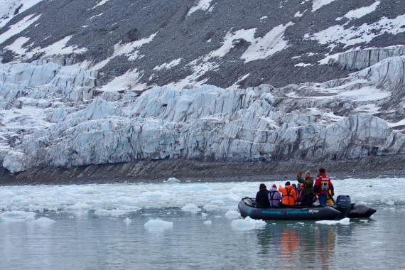 Here comes the day of the beginning of our Arctic adventure aboard Ortelius. Throughout the entire day the sun had shone in Longyearbyen, a perfect setting for our departure. At 4pm we all gathered at Bykaia on pier A to wear our lifejackets and get onto the Zodiac for our first shuttle to the ship.